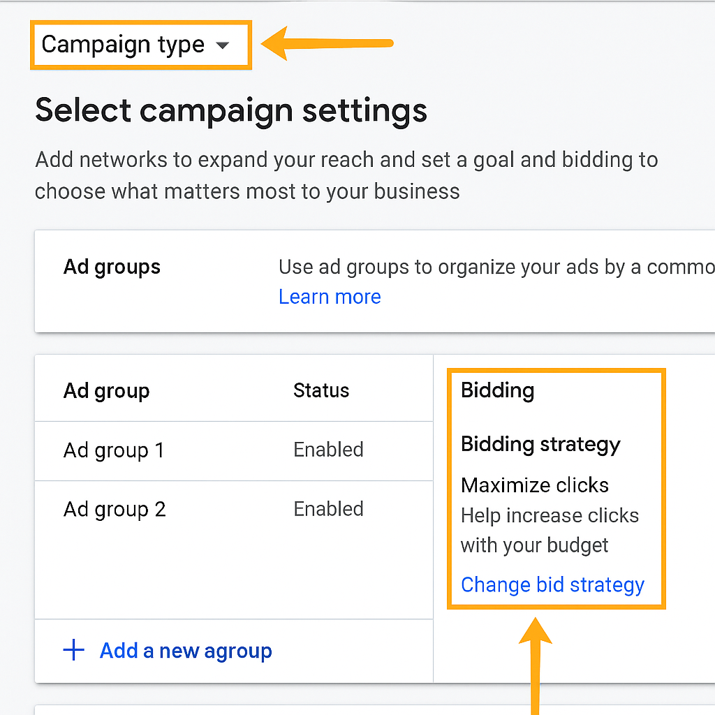 clear structure and smart bidding maximize efficiency. For a $2000 budget, Desert Brew might split into “brand” and “specialty coffee” campaigns with Maximize Conversions bidding.