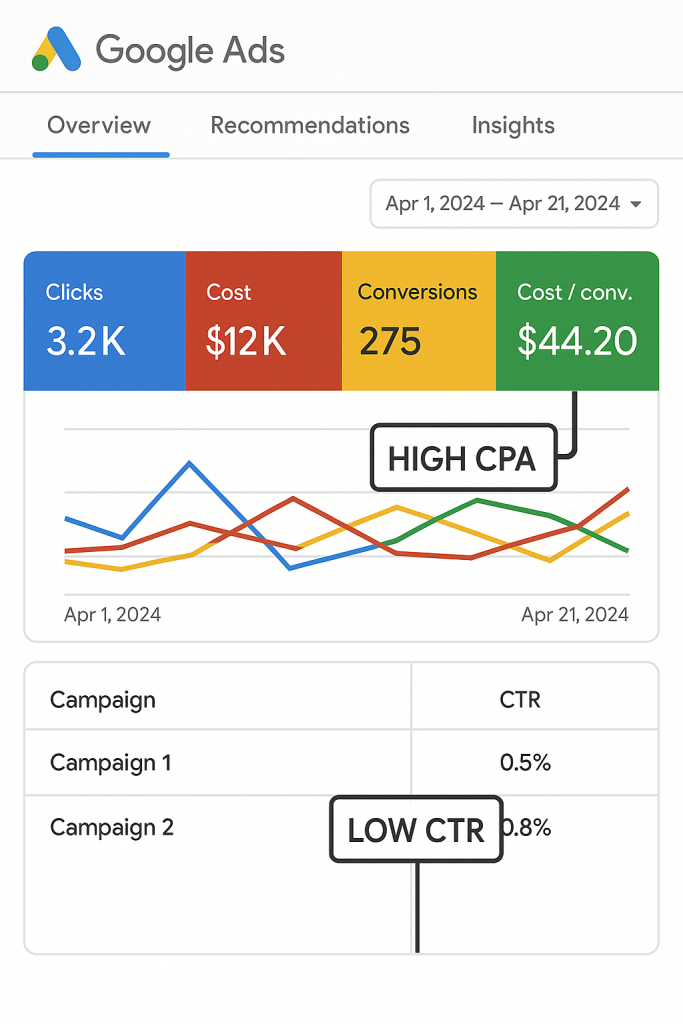 Regular check-ins keep campaigns healthy. If Desert Brew’s CPA is high, pause weak keywords or shift budget to top ads.