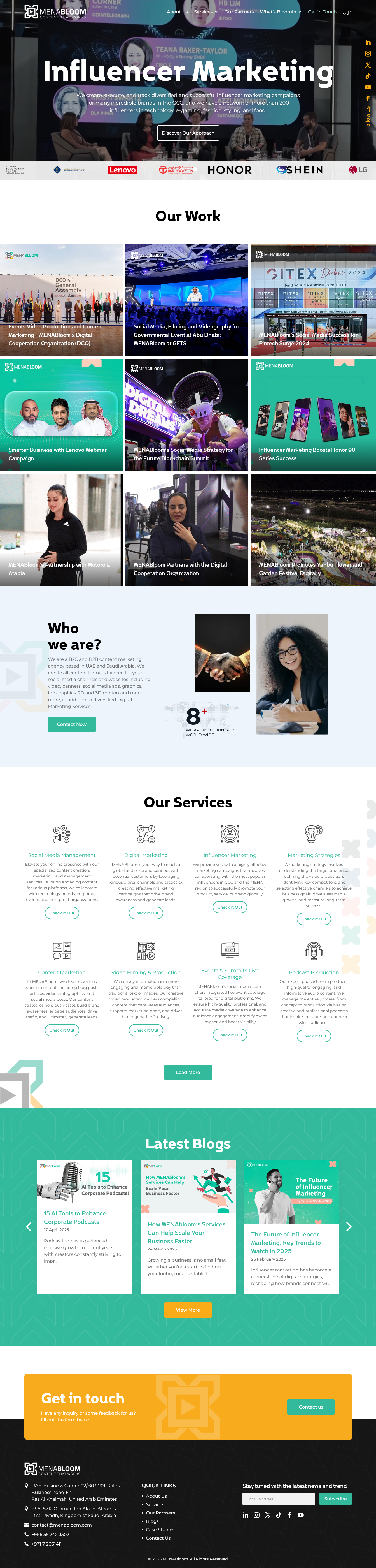 RedAlkemi developed a dynamic, user-friendly website for MenaBloom, showcasing their expertise and approach to content creation. The site reflects their commitment to high-quality, multi-asset programs and effective marketing solutions.