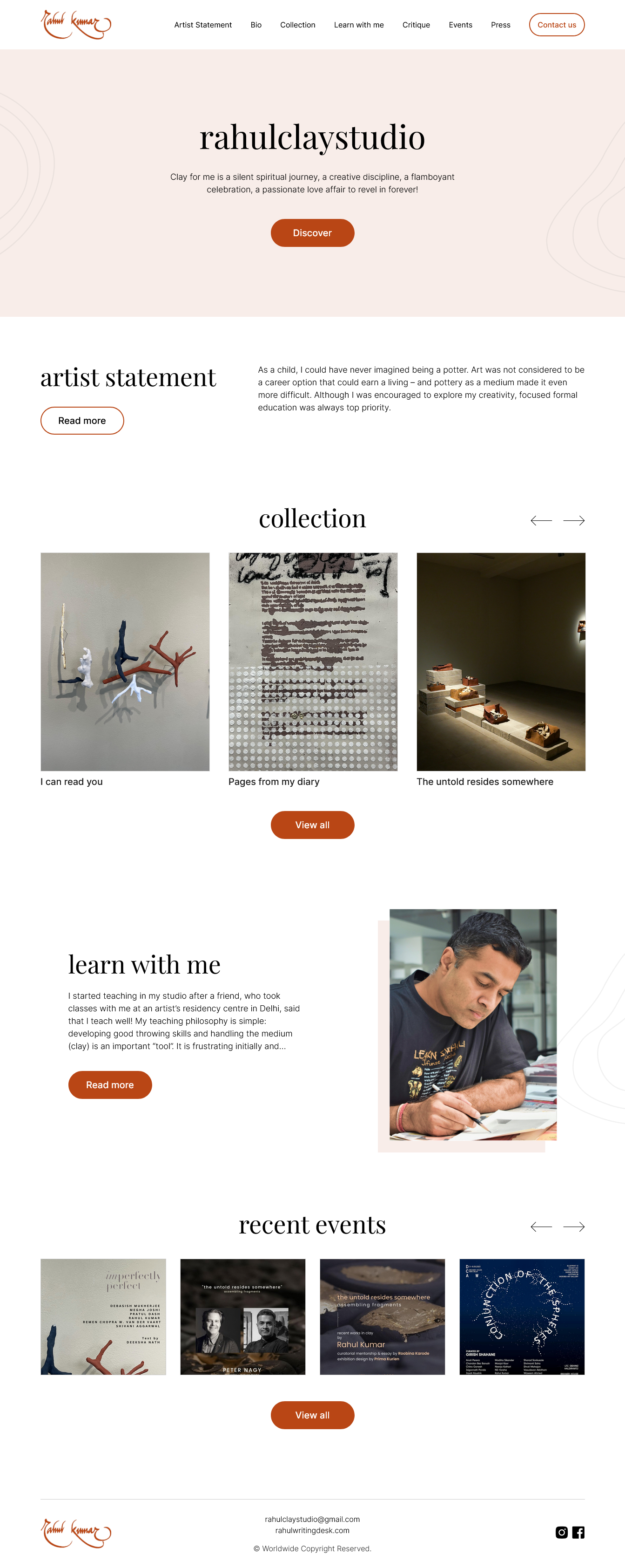RedAlkemi helped rebrand Rahul Clay Studio, redesigning the website to better reflect his artistic vision, enhance user experience, and optimize its technical performance.